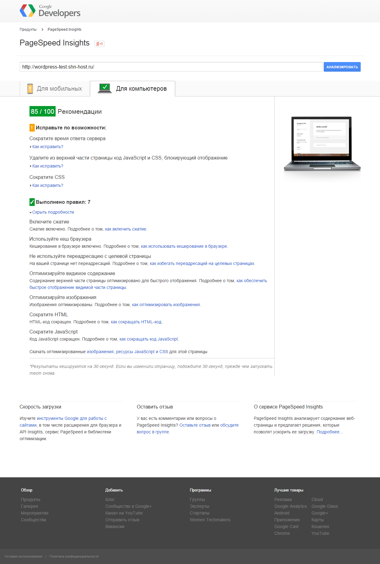 Скорость загрузки Wordpress-сайта на нашем хостинге